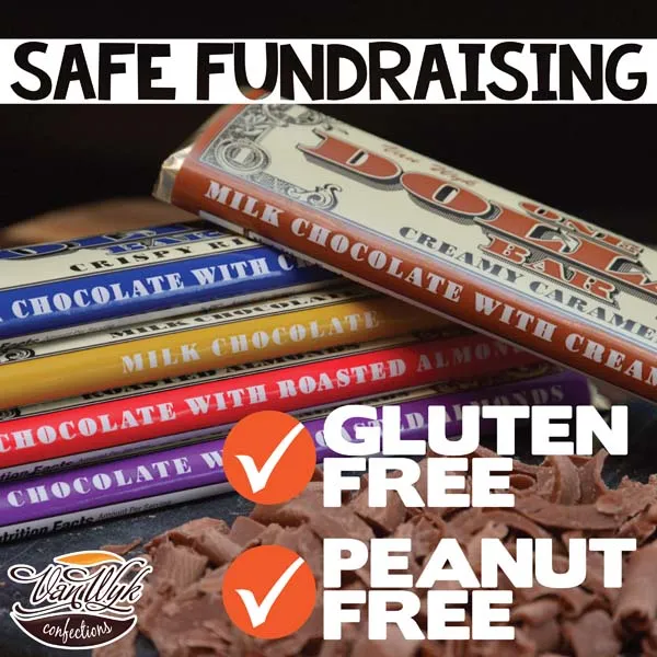 These chocolate bars are completely peanut-free, gluten-free, and kosher, making them a safe, inclusive treat for schools, sports teams, and community events. Whether you’re fundraising for a small group or a large school, this top-selling favorite brings the flavor and the profits!